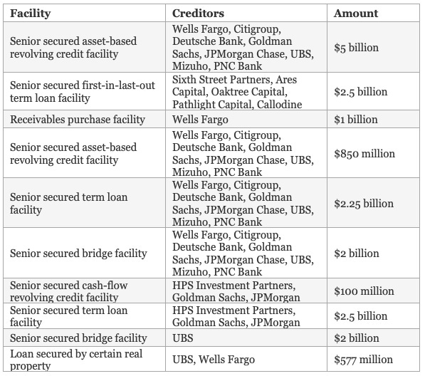 Meanwhile, the debt side of the deal is a behemoth including over a dozen creditors:
